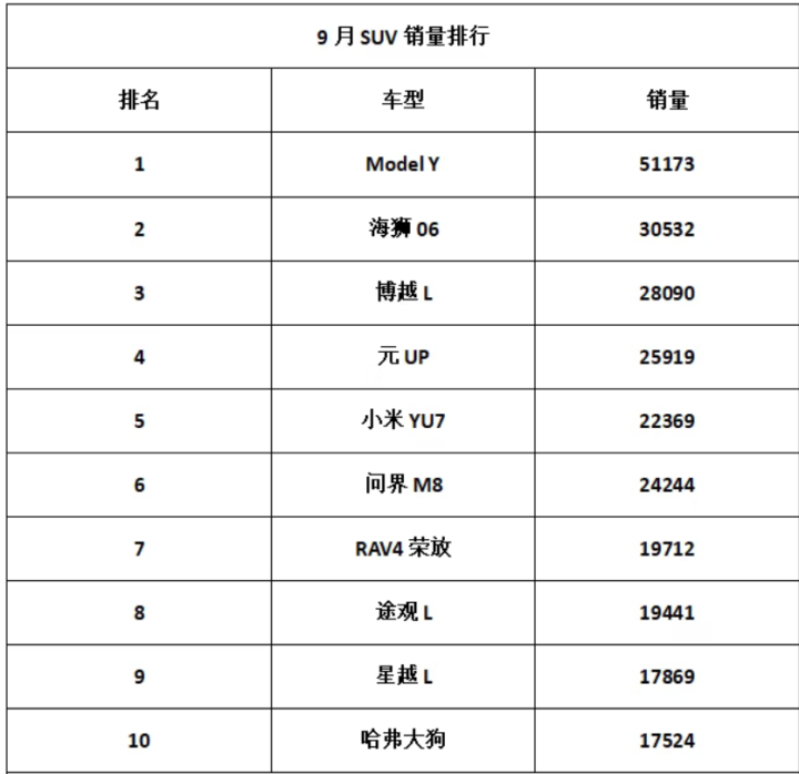 在刚刚出炉的9月SUV销量榜中,小米YU7以22,369辆的惊人成绩冲进全国前五,力压一众老牌对手,甚至超越了蔚来、理想、问界等主流新能源品牌。