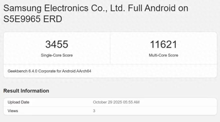 上周,三星 Exynos 2600 再次现身了 GeekBench 6 跑分。跑分列表显示,其单核成绩为3455,多核成绩11621。