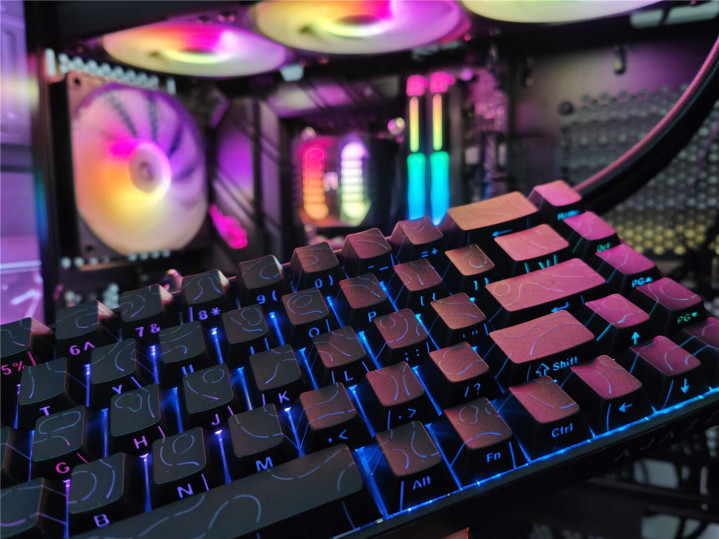 另外为了满足用户对于灯效的需求,黑爵AK680 V2配备了1600万色可调的RGB灯效,并采用了下灯位设计,确保灯光从键帽缝隙均匀溢出,形成美丽的光环。