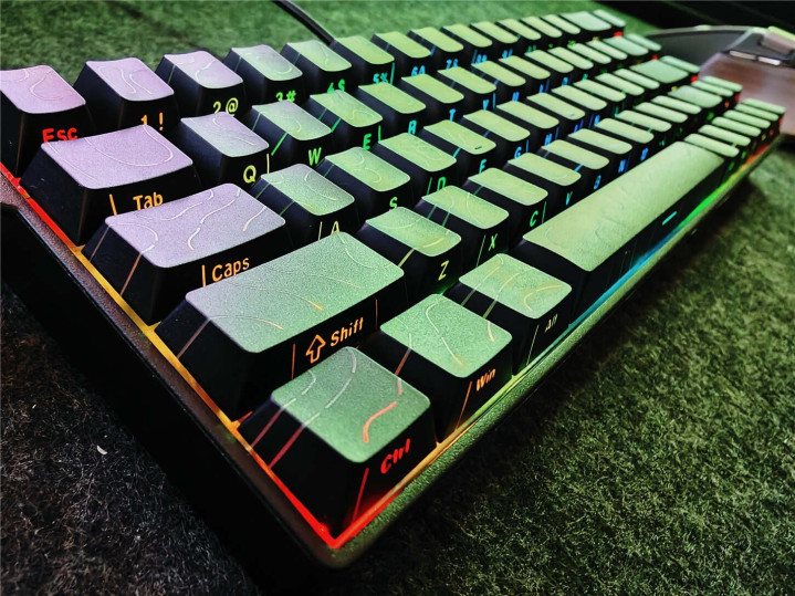 键帽采用了PBT材质,不仅耐磨,而且手感冰凉顺滑。特别是我手中这款“等高线黑”配色,低调却富有个性,既不张扬又充满现代感。值得一提的是,键盘还配备了一条可拆卸的飘带,可以根据个人喜好更换,增添一丝独特的个性化元素。
