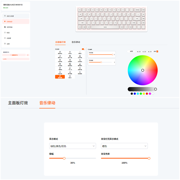 黑爵AK680 V2支持网页驱动,用户可以通过网页驱动快速进行设置,不仅支持自定义按键,还可以设置灯效、录制宏命令、管理游戏模式等。界面简洁明了,功能一目了然,适合各种需求的用户,大大提升了个性化使用效果。